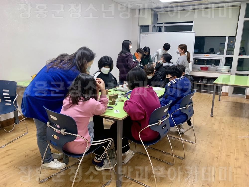 ○일시 : 2021. 3. 20.(토) 10:00~13:00○장소 : 수련관 2층 방과후아카데미 교실 및 1층 야외 ○내용 -새해 첫 토요체험으로 방과후아카데미 학생들과 함께 텃밭 작물을 심었습니다. 딸기모종을 심을 화분에 '장흥군청소년방과후아카데미 꼭다배움터'를 한 글자씩 예쁘게 새겨넣고 꾸몄습니다. 열심히 가꾸면 무럭무럭 자라 탐스러운 열매가 열리겠죠? 비가 부슬부슬 내리는 궂은 날씨에도 열심히 참여해준 학생들이 고맙고 대견합니다^^
