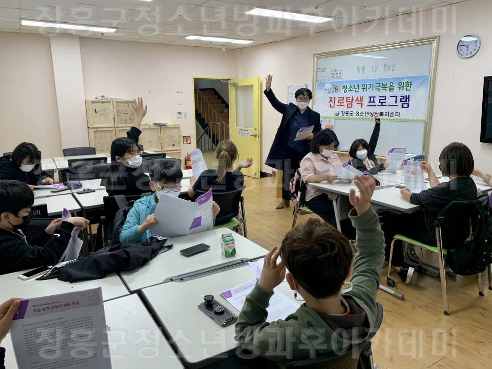 ○일시 : 2021. 3. 25.(목) 17:40~18:30 / 4. 1.(목) 17:40~19:30○장소 : 각 교급별(도담반, 하랑반) 교실○내용 -방과후아카데미 학생들을 대상으로 장흥군청소년상담복지센터와 연계하여 'U&I학습유형검사'를 실시하였습니다!!! 청소년 개개인의 학습성격유형, 행동특성, 심리상태, 진로방향 등을 알고 앞으로의 학습 방향을 설정하는 데 큰 도움이 되었습니다~^^