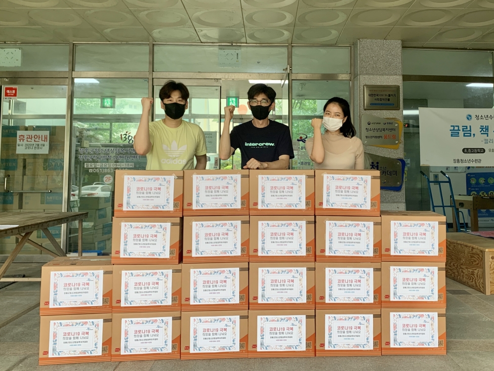 ○내용 -장흥군 청소년방과후아카데미 운영중단으로 인한 돌봄 공백을 해소하기 위해, 꼭다배움터 희망 초·중등 청소년에게 간식꾸러미(컵밥, 라면, 주스, 과일 등)와 마스크를 전달하였습니다. 또한 집에서도 간단하게 체험할 수 있는 VR 3D 카드보드 교구와 상추 모종 키우기 세트를 함께 전달하였습니다. 청소년들이 집에 있는 시간 동안 무료하지 않게 즐거운 추억을 쌓길 바랍니다. ^^