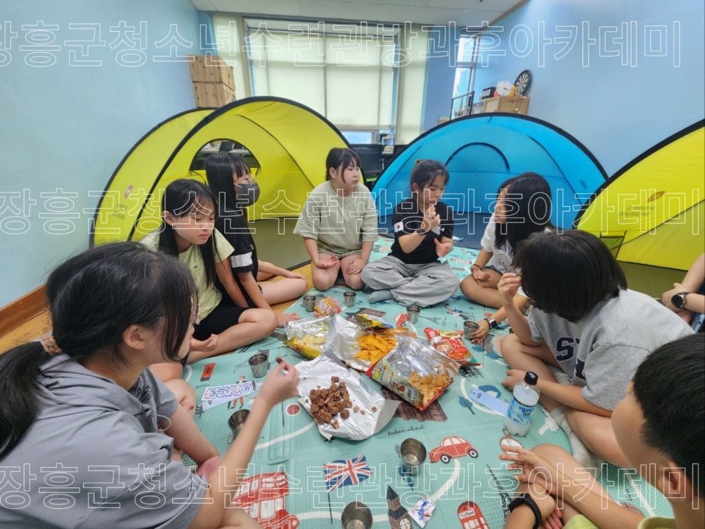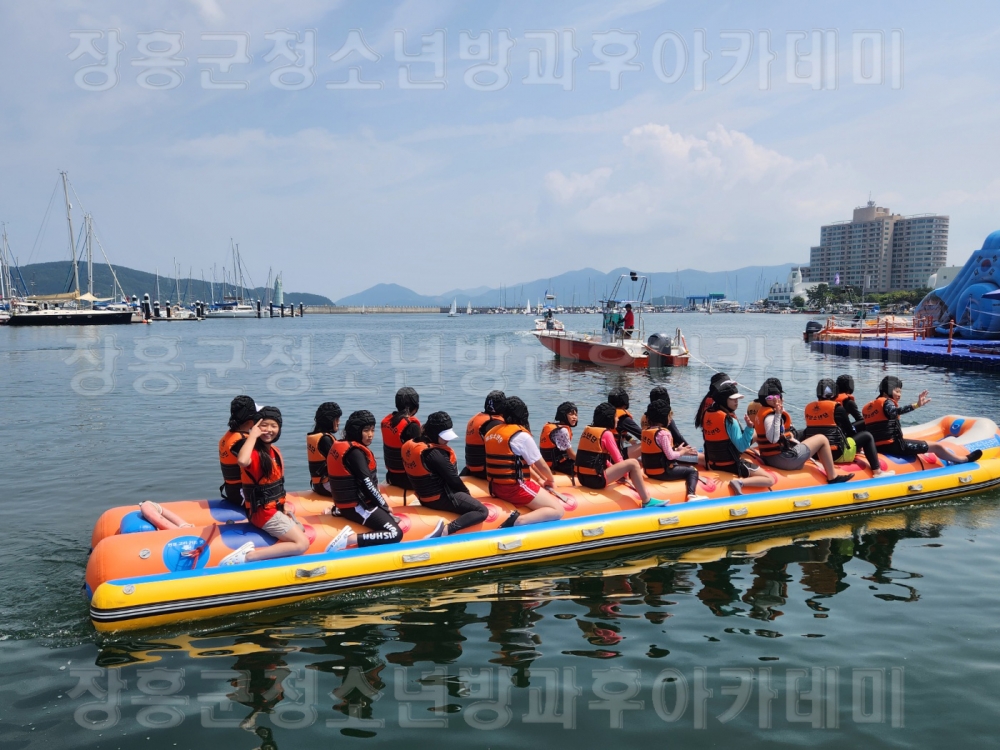 ▶통영청소년수련원에 도착 했어요~ 장흥청소련수련관에서 2시간 30분 전에 출발했지요. ▶먼저 해양 안전 교육을 먼저 받은 후, 숙소 배치를 받았어요. 그리고 신나는 해양 체험을 위해 출발 했어요.. ▶물놀이 전에는 준비 운동이 필수쟎아요. 하낫 두울, 셋, 넷..... 구령 소리에 맞춰 준비 운동도 재밌게 합니다, ▶구명조끼는 각자의 몸에 맞추어 꽉 조여서 입어야 해요. 우리의 안전을 위해서는 꼭 지켜야 할 규칙입니다. ▶뜨거운 여름 햇빛이 내리쬐고 있었지만, 우리를 막을 수는 없었어요. 통영 바닷물에서 방·카 친구들하고 정말 재밌는 시간을 보냈으니깐요. ▶바닷물 위에서 빙빙 도는 강강술래~. 우리 지금 동그라미 만들어 둥글게 돌고 있는 것 맞죠? 분명히 강강술래~강강술래~ 였는데.. ▶어?어?어? 와~~ 얘들아 내가 물에 떴어. 너희도 이렇게 뜰 수 있어? 해 봐. 진짜 재밌다. ▶우리도 물에 들어가서 놀까? 바닷물이 깊어서 다리가 바닥에 안 닿을 것 같은데.. 아니, 다른 친구들도 재밌게 떠 있는 것 보니깐, 무섭지는 않겠는데.. 가자~ ▶와~ 바다SRT 타고 더 먼 바다로 달려보자~. 선생님 우리 잘 다녀 올께요~ 야호~~ 진짜 재밌다~ ▶씨카약 타고 푸른 바다를 달려 보자~ 영차 영차..우리 힘차게 달리고 있는 것 맞지? 노젓기가.... 쉽지 않아요. 그래도 포기하지 않고 영차영차. ○일시 : 2024. 8.5.(월)~8.6.(화) ○장소 : 장흥군청소년방과후아카데미교실에서 안전 교육 → 통영시청소년수련원 도착→ 해양 활동장으로 이동 ○내용 : 장흥군청소년방과후아카데미는 참가 신청서를 제출한 초·중등 청소년들과 1박2일 일정으로 여름해양캠프를 다녀왔다. 뜨거운 여름 태양 아래에서도 주저함 없이 신나고, 재밌는 체험을 하며, 방카 친구들과 우정과 단합을 확인하는 시간이었다. 10가지의 다양한 해양 체험에 용감하게 도전 했으나, 실패~ 실패~!하기도 했지만 모두 까르르 까르르 웃었다. 부모님이 계시는 집을 떠나 와서, 위축될 수도 있는 나이의 청소년들인데도 질서 있게 식사하고, 숙소에 돌아와서는 서로를 챙겨주며 주변에 피해 주지 않고 즐겁게 게임하는 이쁜 모습을 보인 우리 청소년들. 상반기 동안 모두 수고 많았습니다. 여름 방학 건강하게 잘 보내고, 하반기에도 우리 행복하고 유익한 프로그램으로 재밌는 장흥군청소년방과후아카데미에서 으쌰으쌰 합시다.