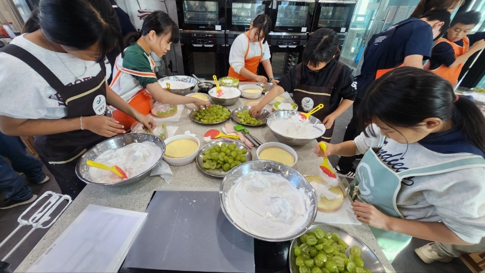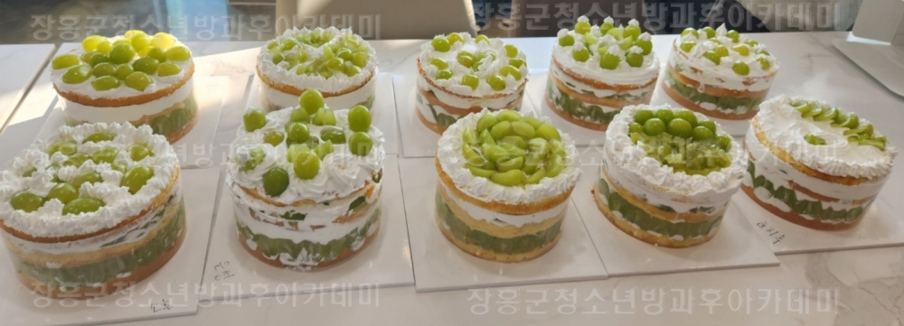 ● 일시 : 2023. 11.11 토요일, 오후 1시 ~ 오후 5시● 장소 : 장흥군청소년수련관 3층 쿠킹룸● 내용 : 장흥군방과후아카데미 초등반, 중등반 학생들은 토요체험학습으로 <샤인머스켓 케이크 만들기>를 하였다. 2층 교실에서 요리 수업 전 안전 교육 시청각 교육을 받았다. 머리가 긴 학생들은 머리를 단정하고 묶었고 손을 깨끗하게 씻은 후, 각자 앞치마를 입었다. 제빵 선생님의 수업을 차분하게 배운 후, 각자가 원하는 케이크 디자인을 생각한 후 케이크 만들기를 시작했다. 가족들과 함께 먹을 모습을 생각하며 즐겁고 행복한 만들기 시간을 보냈다. 케이크를 완성한 후, 각자 상자에 담아 집으로 돌아가며 토요체험프로그램은 마쳤다. 싱싱하고 좋은 재료를 사용했기 때문에 맛이 무척 좋았다는 감사평을 전했다.