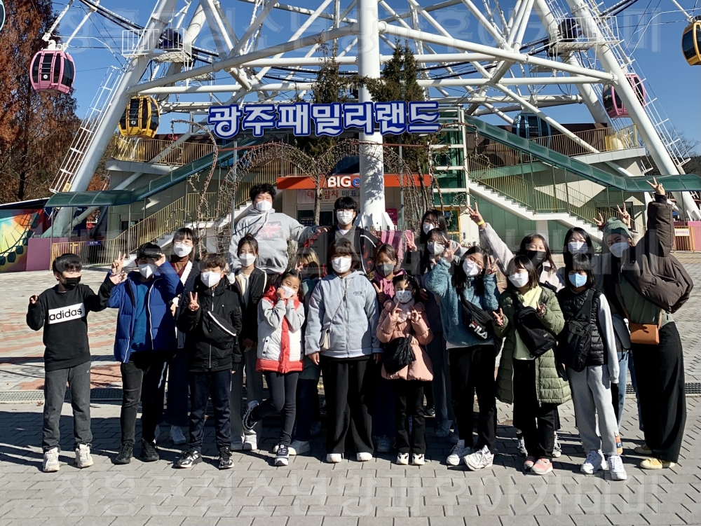○일시 : 2021. 11. 27.(토) 10:00 ~ 16:00○장소 : 청소년수련관 2층 초등부,중등부 교실 , 광주 패밀리랜드○내용 주말체험학습으로 광주 패밀리랜드에 다녀왔습니다 출발 전 안전교육을 진행하고 버스, 식당에서 방역수칙을 지키며 진행하였습니다.