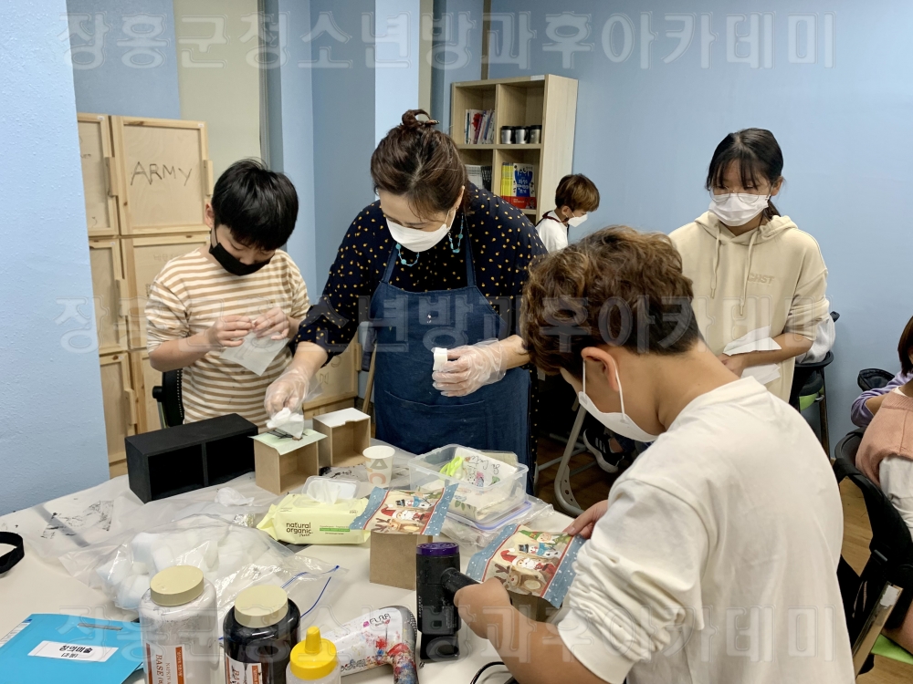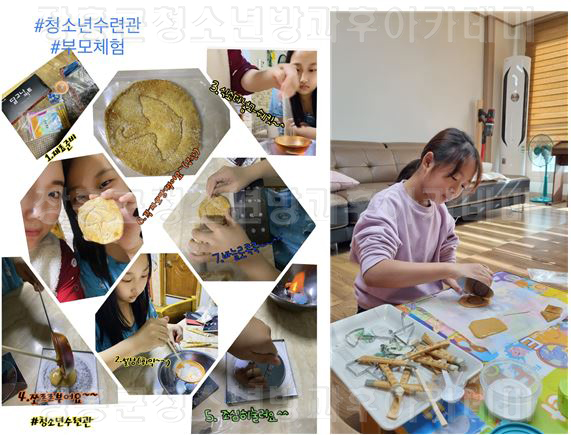 ○기간 : 2021. 12. 6.(월) ~ 12. 17.(금) (2주 간)○장소 : 개별 키트 제공 후 각 가정에서 비대면으로 프로그램 진행○내용 -올해도 방과후아카데미 참여 청소년의 학부모(보호자)께서가정에서 다 같이 즐길 수 있도록 즐거운 시간을 마련해드렸습니다.달달~한 달고나 만들기부터 아름다운 전통 조선왕실등 만들기까지!프로그램에 참여하는 동안 세대를 아우르는 화목한 시간이 되었다고 하네요^^