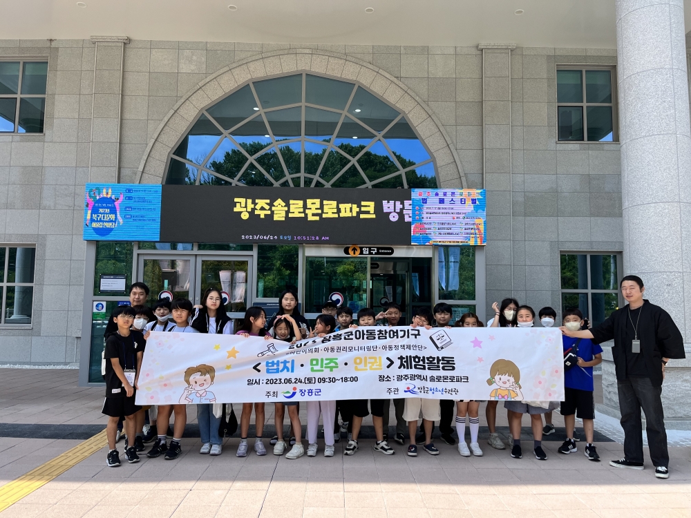 2023 장흥군아동참여기구 <어린이의회. 아동권리모니터링단, 아동정책제안단>"법치. 민주. 인권" 체험활동 2023. 06. 24.(토) 09:30~18:00광주광역시 솔로몬로파크