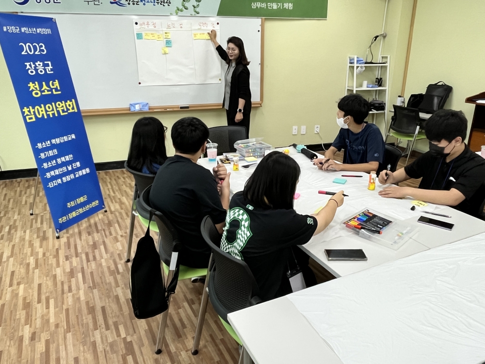 청소년참여위원회 정책제안 대비 세부주제선정 및 정기회의 진행 2023. 7. 15 10:00-12:00장흥군청소년수련관 1층 꿈뜨락실