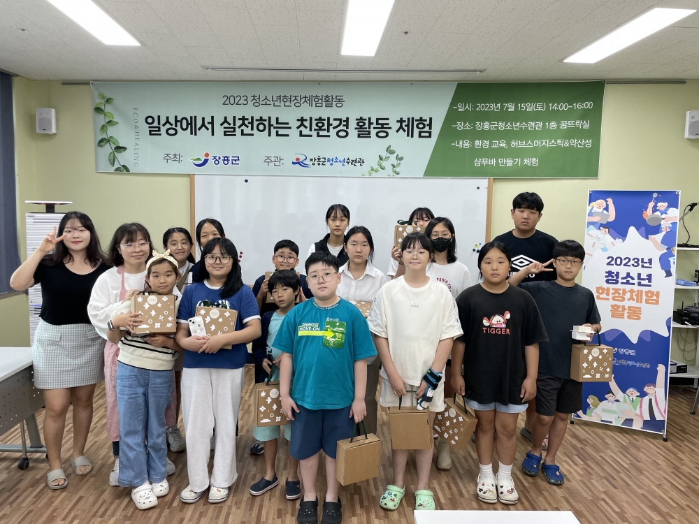 2023현장체험활동 -일상에서 만나는 친환경 체험<환경교육, 허브스머지스틱만들기, 약산성샴푸바 만들기 활동> 2023. 7. 15. 14:00-16:00장흥군청소년수련관 1층 꿈뜨락실