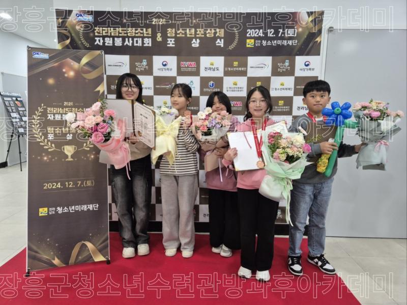 ○내용: 장흥군청소년방과후아카데미 청소년 5명 (김*성, 김*아, 김*림, 이*희, 임*은 ) 청소년자기도전포상제 동장 포상