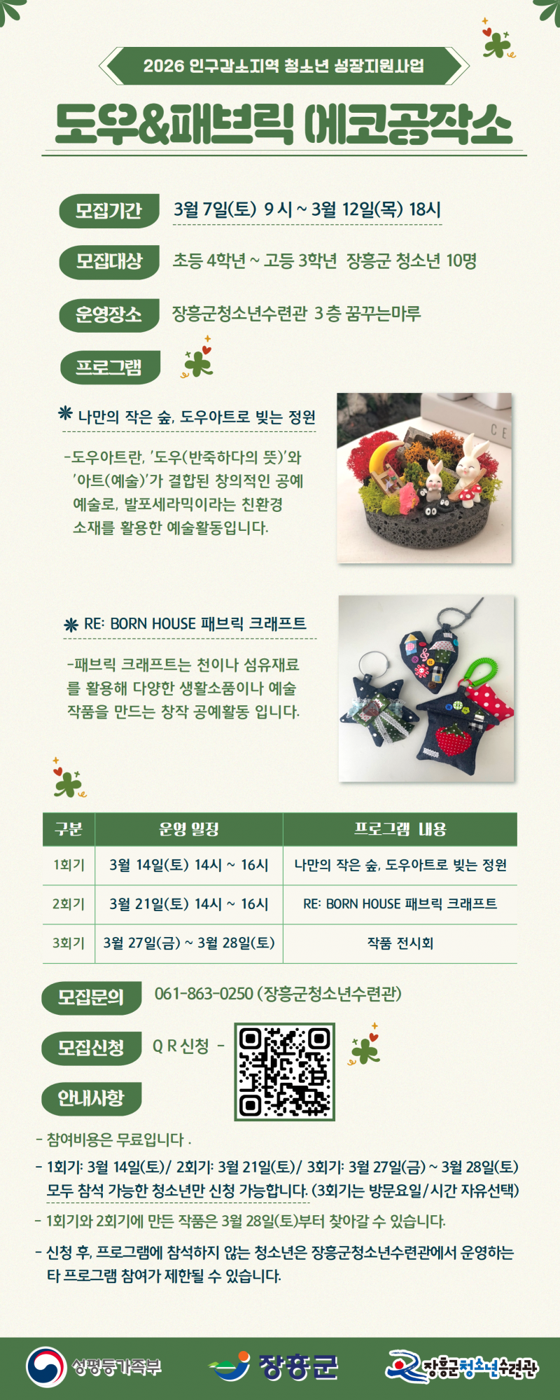 인구감소지역 청소년 성장지원사업 [도우&패브릭 에코공작소] 청소년 모집 (3/7~3/12)