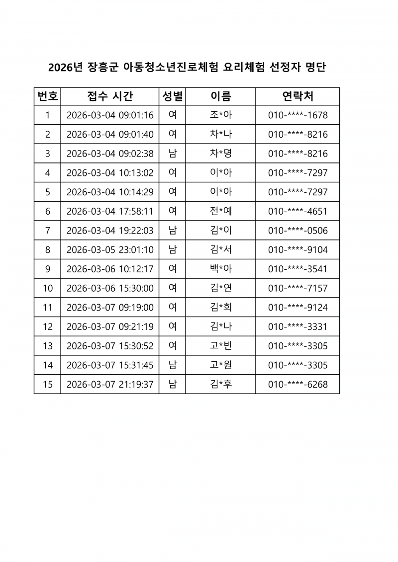 아동청소년진로체험 [스스로 두끼 피크닉 도시락 만들기] 참여확정명단